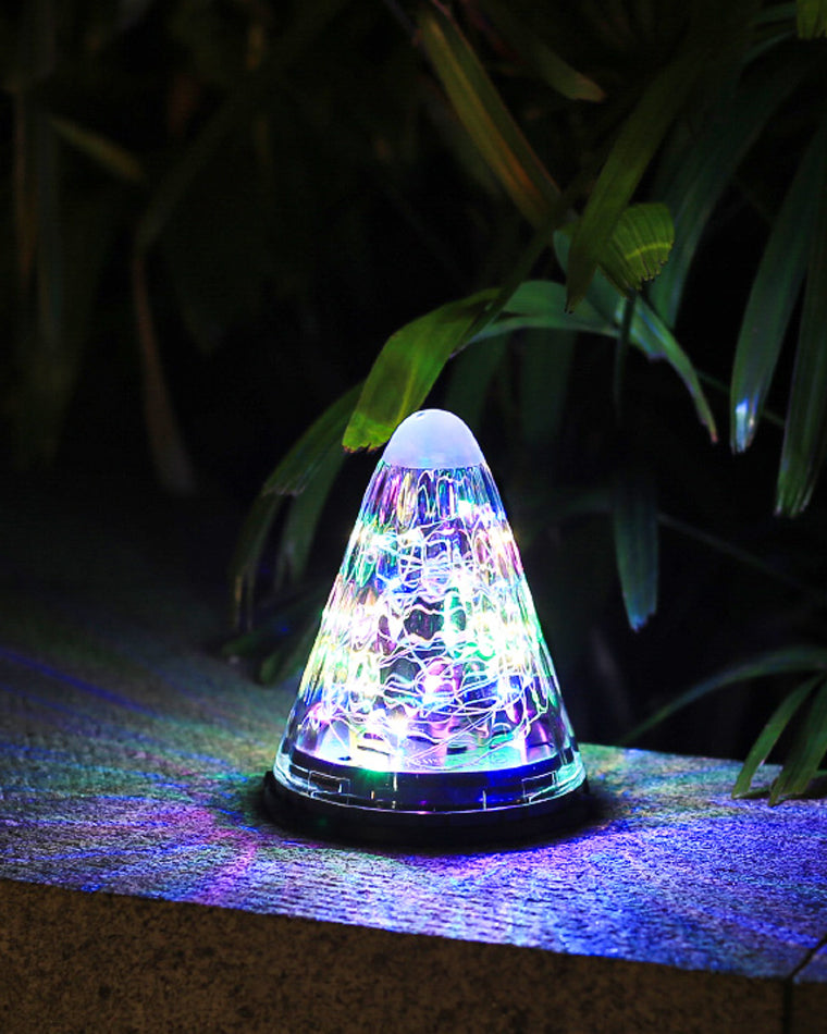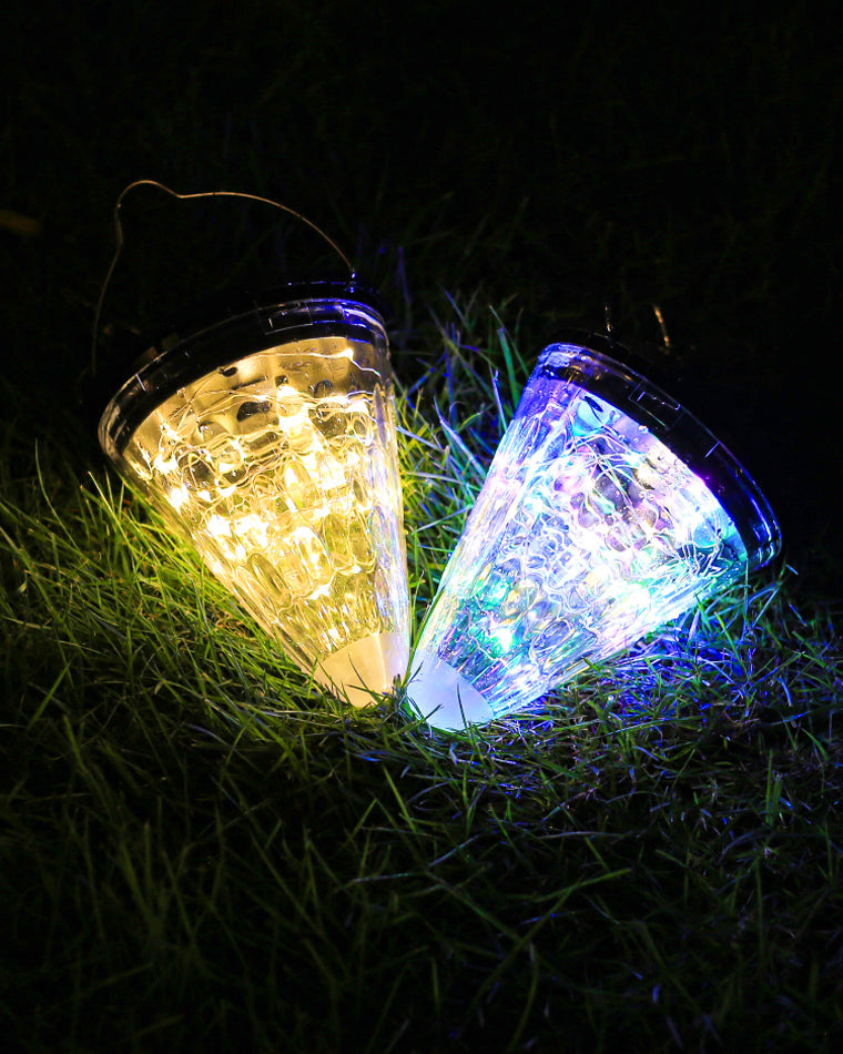Te dekoracyjne lampy w kształcie stożka wprowadzają do ogrodu magiczny nastrój dzięki szklanemu, teksturowanemu wykończeniu, które tworzy piękne wzory światła po zmroku. Wbudowany haczyk ułatwia zawieszenie lamp na gałęziach drzew, haczykach lub belkach pergoli, tworząc nastrojowe oświetlenie na tarasach i w ogrodach. Dostępne w wersji z ciepłym światłem lub wielokolorowym, dodają uroku wieczornym spotkaniom na świeżym powietrzu.